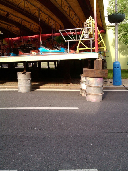 Naštěstí to nespadlo. Ale vypadalo to hrůzostrašně. Některé maminky se na to bály dát své děti. Což je pochopitelné. Řeč je kolotočích, které stály u pošty. Konkrétně atrakci bouracích autíček.