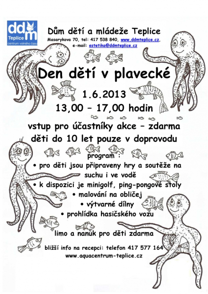Dům dětí a mládeže Teplice pořádá Den dětí v plavecké 1.6.2013 13-17 hodin.