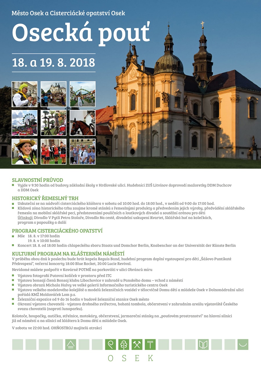 Osecká pouť klepe na dveře. Opět vás čeká bohatý kulturní a zábavní program, řádění na atrakcích, kolotoče, motokáry, autíčka a mnoho dalšího. Po oba dva dny Vám bude hrát kapela Regius Band.