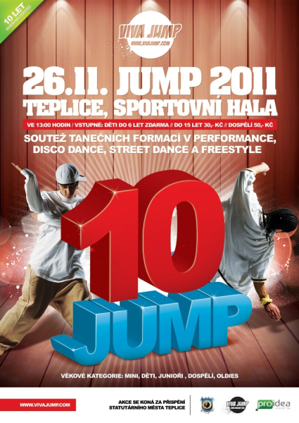 Už je to 10 let, co úspěšná taneční skupina Viva Jump bude pořádat vlastní soutěž JUMP, která je určená opravdu všem věkovým kategoriím, představí se tady jak děti, junioři, dospělí tak i kategorie oldies. Soutěžit se bude v kategoriích disco a street dance.