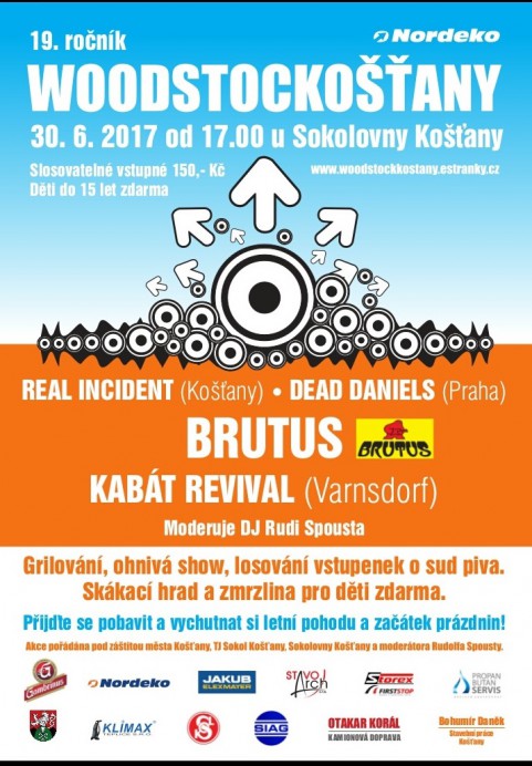 19. ročník košťanského Woodstocku v pátek 30. června 2017 od 17:00 hod. Jedná se o jednodenní, malý a nekomerční festival zaměřený převážně na českou hudbu z okolí Teplic.