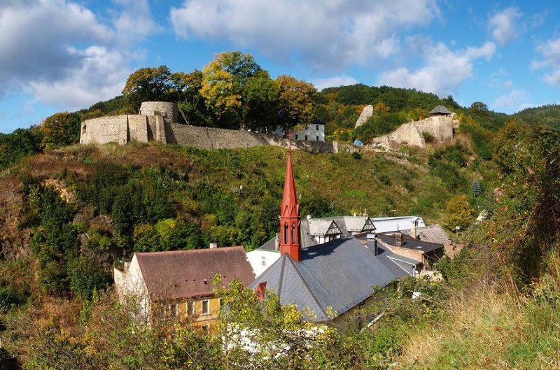 Z horní obce se díky prosperitě dolů rychle vyvíjelo městečko a k jeho ochraně, ale především k ochraně dolů v okolí i významné komunikace, která údolím a tedy Krupkou vedla, byl vybudován počátkem 14. století hrad. První doklad o něm je z r. 1330, kdy král Jan Lucemburský daroval hrad Krupku míšeňskému šlechtici Těmovi z Koldic. Ten byl významnou postavou dvora Jana Lucemburského a doprovázel krále i při jeho dobrodužných cestách Evropou.